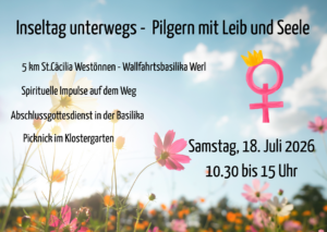 Wir freuen uns alle nach dem Impuls auf ein buntes, leckeres Buffet und bitten jede Teilnehmerin dafür etwas mitzubringen. Für Kühlmöglichkeiten und Transport nach Werl ist ab Westönnen gesorgt.